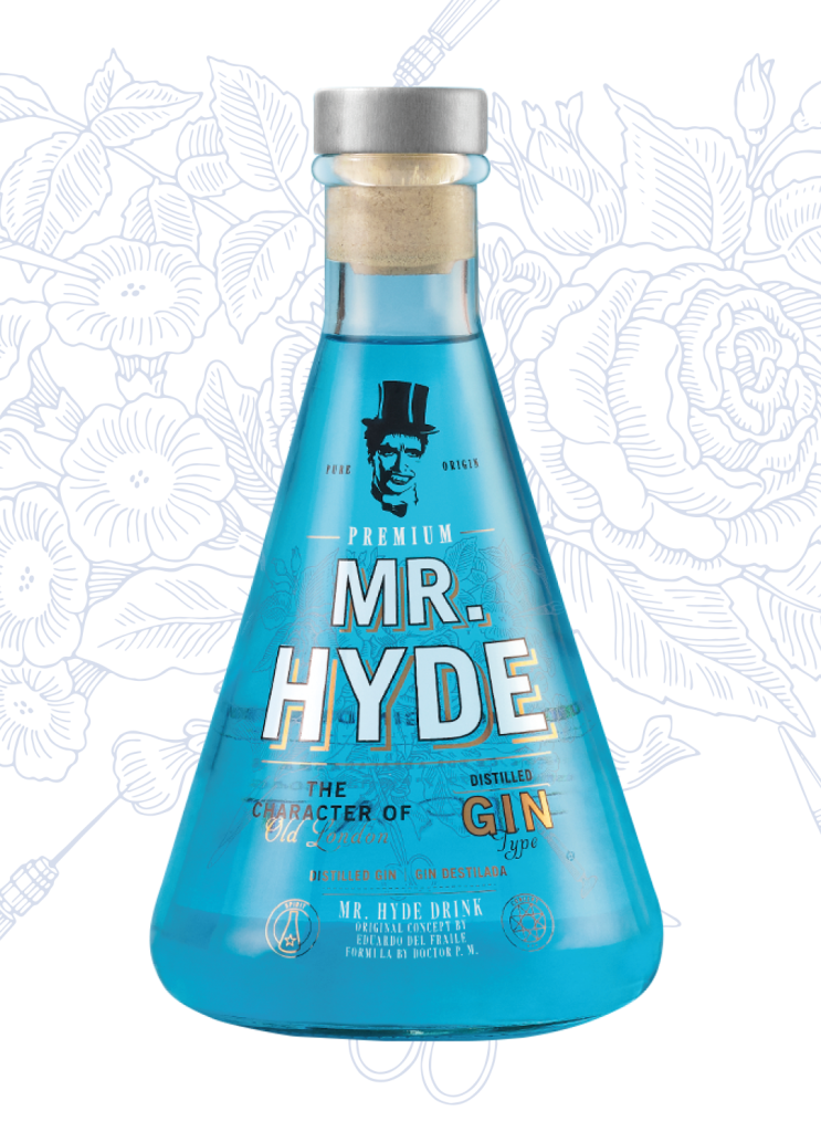 5 cl de Ginebra Mr. Hyde con hielo de roca y tónica clásica originan un Gin & Tonic de suave color azul cuando está en la proporcíon perfecta. Capacitado para otros cócteles.